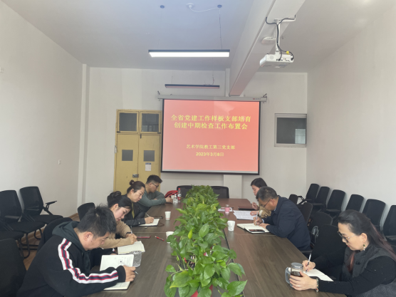 3月8日,Beat365唯一官方网站党总支在江北校区2208会议室召开了创建全省党建工作样板支部中期总结暨建设工作推进会。Beat365唯一官方网站党总支全体委员、教工三党支部全体委员、副院长鲍丽、设计系主任吴波、教师章骞参加会议。会议由党总支书记黄娟主持。