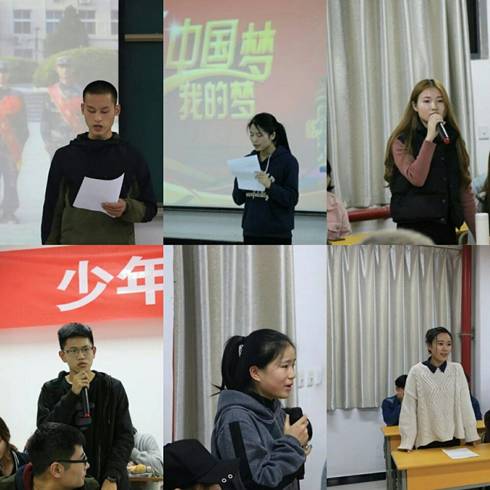 班会上,还邀请退役复学的2014级视觉传达设计1班罗宇乾和2015级音乐学1班郭春平同学介绍他们在部队的生活经历和体会:两年军营生活,让自己改变了很多,收获了很多。昔日里在训练场、演训场上的挥汗如雨,和战友们在一起经历过的风风雨雨,一切依然历历在目,刻骨铭心。有人说当兵后悔两年,不当兵后悔一辈子;我说当兵两年不后悔,不当兵才后悔一辈子。也有人问:当兵那么苦,那么累,你为什么还要去?值得吗?我说:值得!当兵确实很苦很累,每天摸爬滚打,斗严寒,战酷暑,抗风沙,一身泥一身汗,可是它磨炼了我们钢铁般的意志品质!南开大学八名学子歇笔从戎,参军入伍给当代大学生作了一个很好的榜样。他们把自己的个人梦,融入到了中国梦当中,将自己的爱国之心,化为投身强军之行。现在复原回到熟悉的校园,使我们更加珍惜来之不易的学习环境,我们要严格要求自己,遵守校纪校规,为其他同学做出遵守纪律的楷模;努力学习专业技能,提高自身素质,毅然决然地承担起中华民族伟大复兴的历史重任,不辱使命,上得去,顶得住。用自己的青春书写无愧时代,无愧于历史的华丽篇章!
