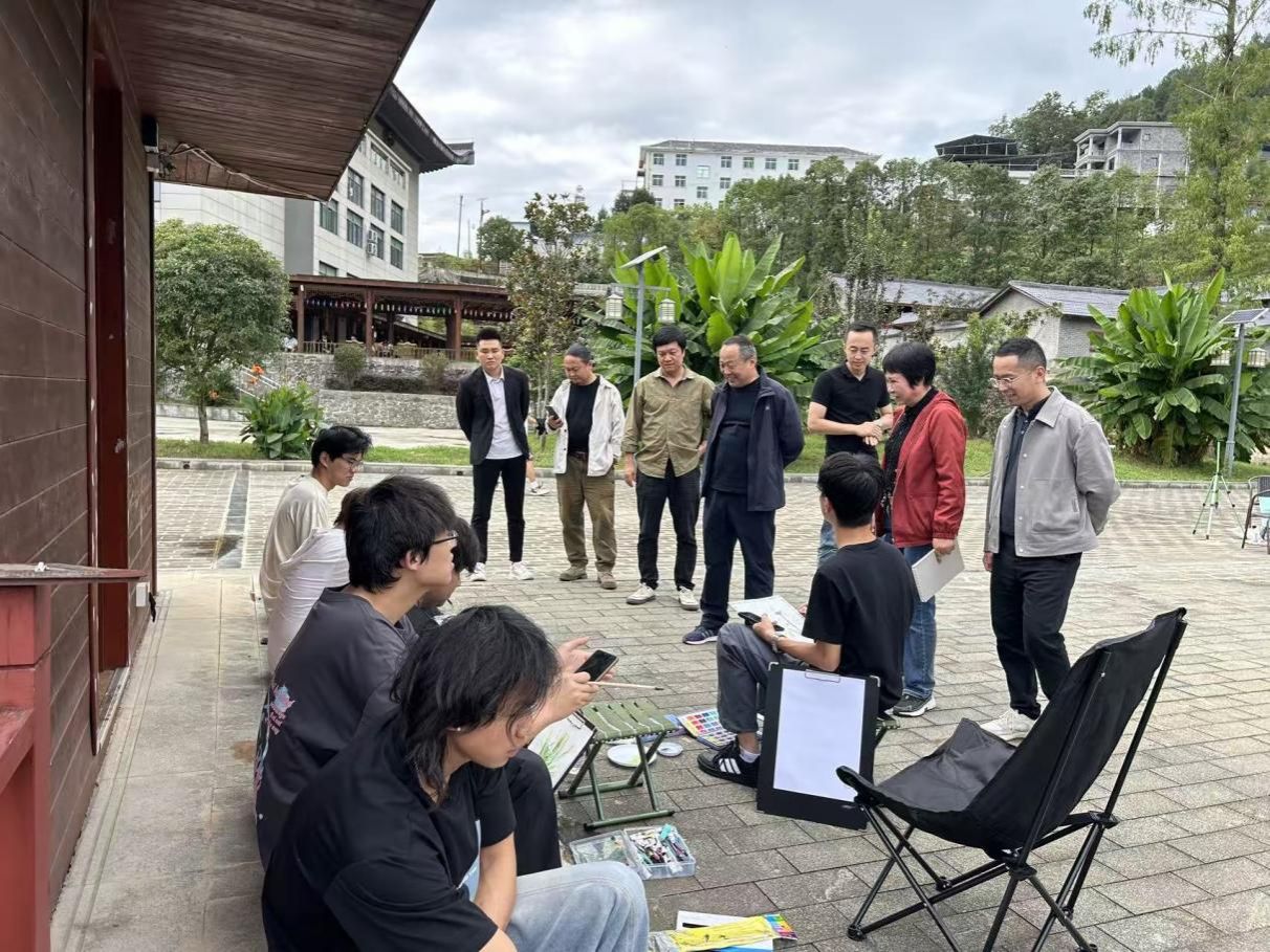 9月27日,Beat365唯一官方网站院长李景林带领教学办公室主任毛德龙、视觉传达设计系主任吴波及教师李秀春,前往学院玥珑茶山、焕古贡茶小镇写生基地,看望在此开展写生实践的2024级视觉传达设计专业师生,检查实践教学开展情况。