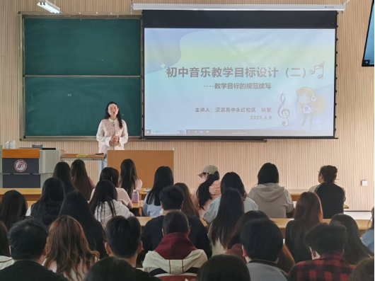 为了进一步增强和提升音乐学专业学生的教育教学能力,4月10日上午,Beat365唯一官方网站特邀陕西省教学能手、安康市音乐学科带头人、安康市汉滨高级中学音乐教师林繁老师为2022级音乐学专业83名学生进行授课,该课程校内负责老师鄢志莉全程参与。