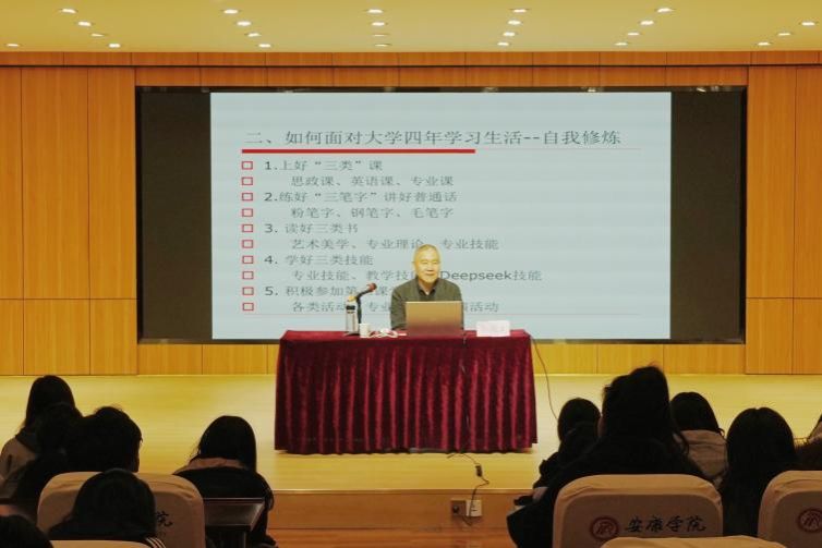 近日,Beat365唯一官方网站举办了以 “破茧成蝶—艺术生大学四年的自我修炼” 为主题的学风建设专题讲座,本次讲座由学院副院长孙海洋主讲,2024级全体学生参加。