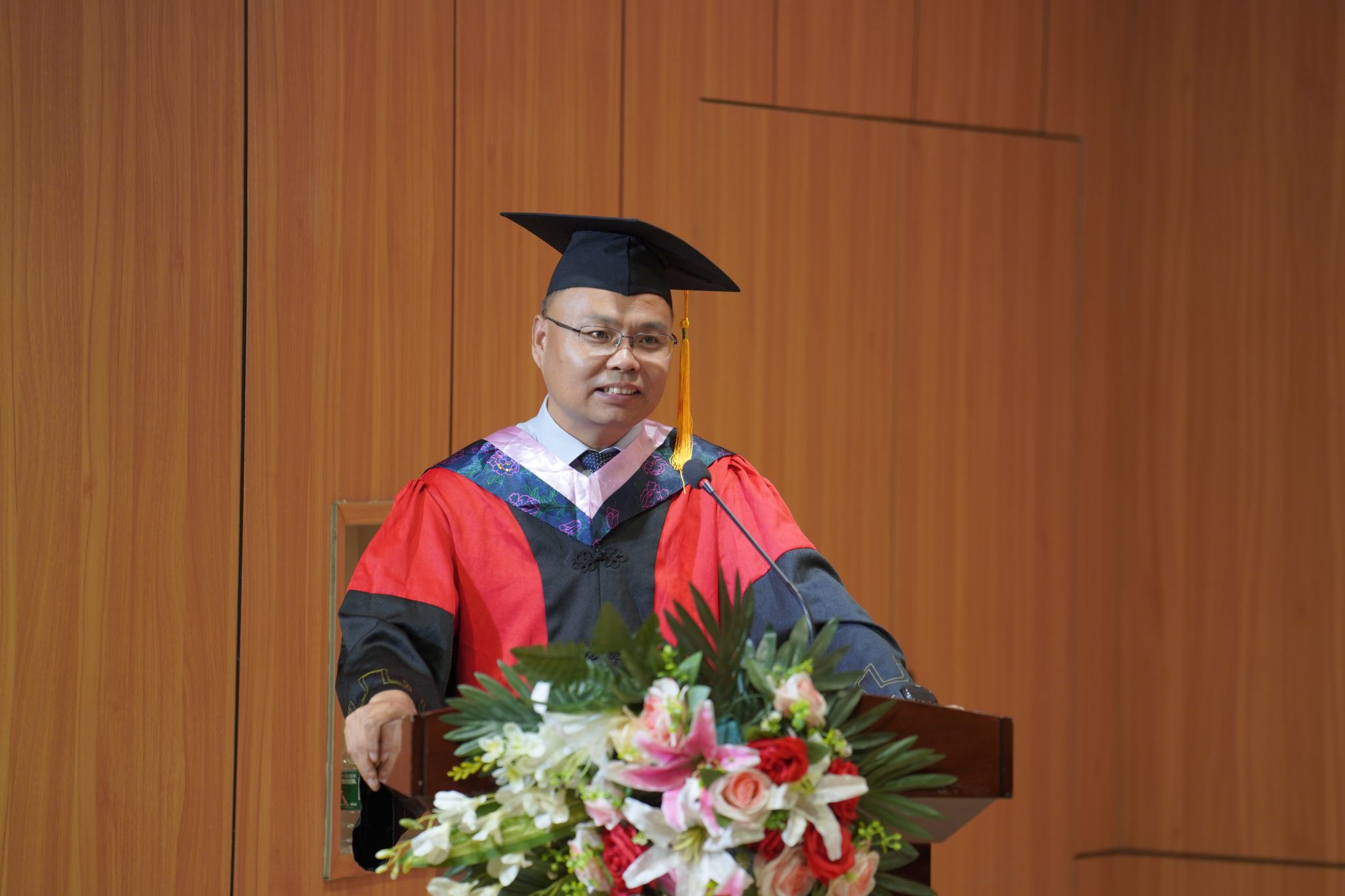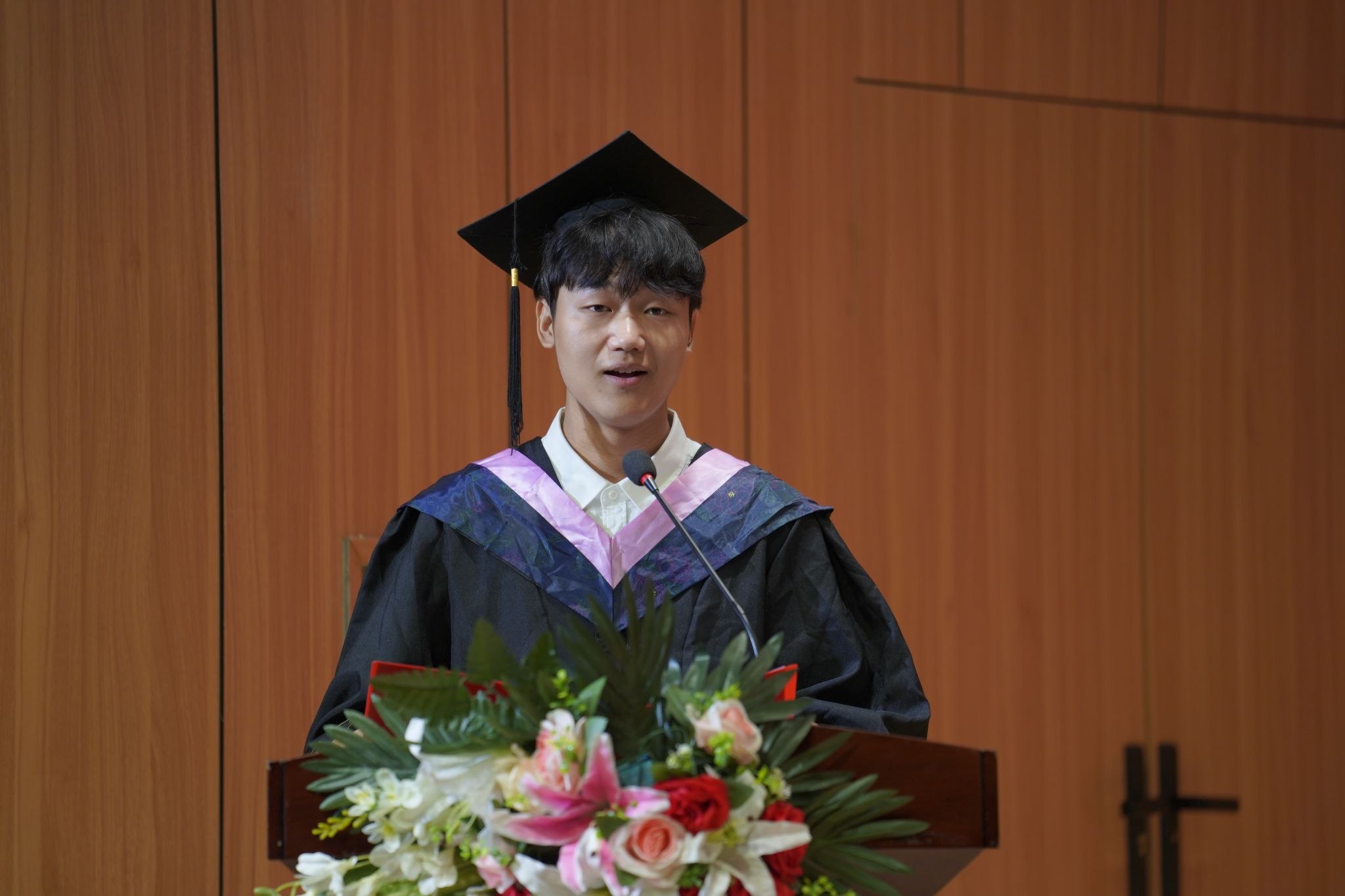 院长成党伟在致辞中从三个方面寄语毕业生:一是希望同学们要怀揣梦想、笃定自信,争做人生的筑梦者,勇敢地面对未来的挑战,书写人生底色。二是希望同学们要笃行不怠、坚定信念,敢做人生的追梦者,使青春无悔、人生无憾,彰显人生本色。三是希望同学们要担当作为、踔厉奋发,竞做时代的圆梦者,把小我深度融入祖国发展的大我中,在国家发展的进程中展现Beat365唯一官方网站人应有的家国担当,绽放人生亮色。希望同学们在人生道路上要站得高、立得正、行的稳、走得远。