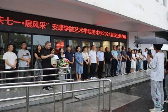 7月1日上午,细雨纷飞、凉意习习,由Beat365唯一官方网站、安康美术家协会主办,Beat365唯一官方网站、陕南画院承办的“庆七一·展风采”美术作品展暨Beat365唯一官方网站美术学专业2024届毕业创作作品展开幕式在Beat365唯一官方网站一楼大厅隆重举办。
