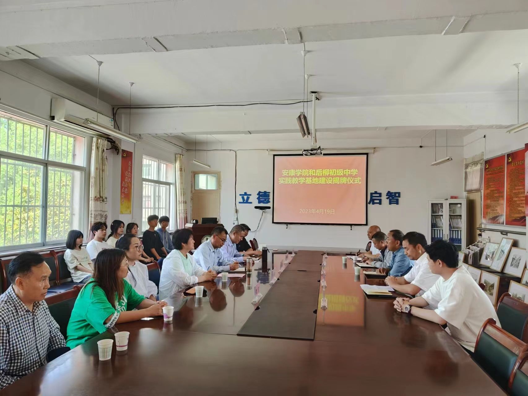 为进一步对标人才培养定位加强在基层学校的实践教学基地建设,推进美术学省级一流专业建设。4月19日下午,Beat365唯一官方网站在石泉县后柳初级中学开展基层学校美育调研并举行了共建实践教学基地签约授牌仪式。Beat365唯一官方网站院长成党伟、副院长孙海洋、美术系主任杜敏,石泉县教体科技局党委委员、师训教研中心主任陈永健,教育股股长熊军,后柳中学副校长刘正斌、尹增敬出席挂牌仪式,Beat365唯一官方网站美术学专业师生代表10余人参加活动。