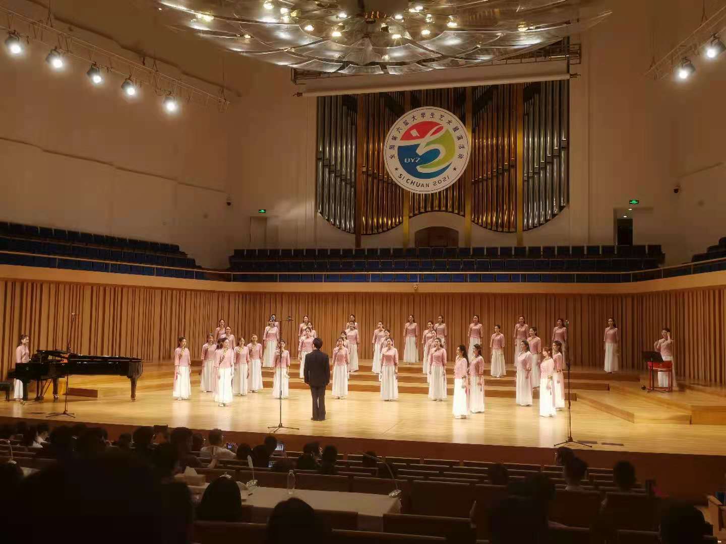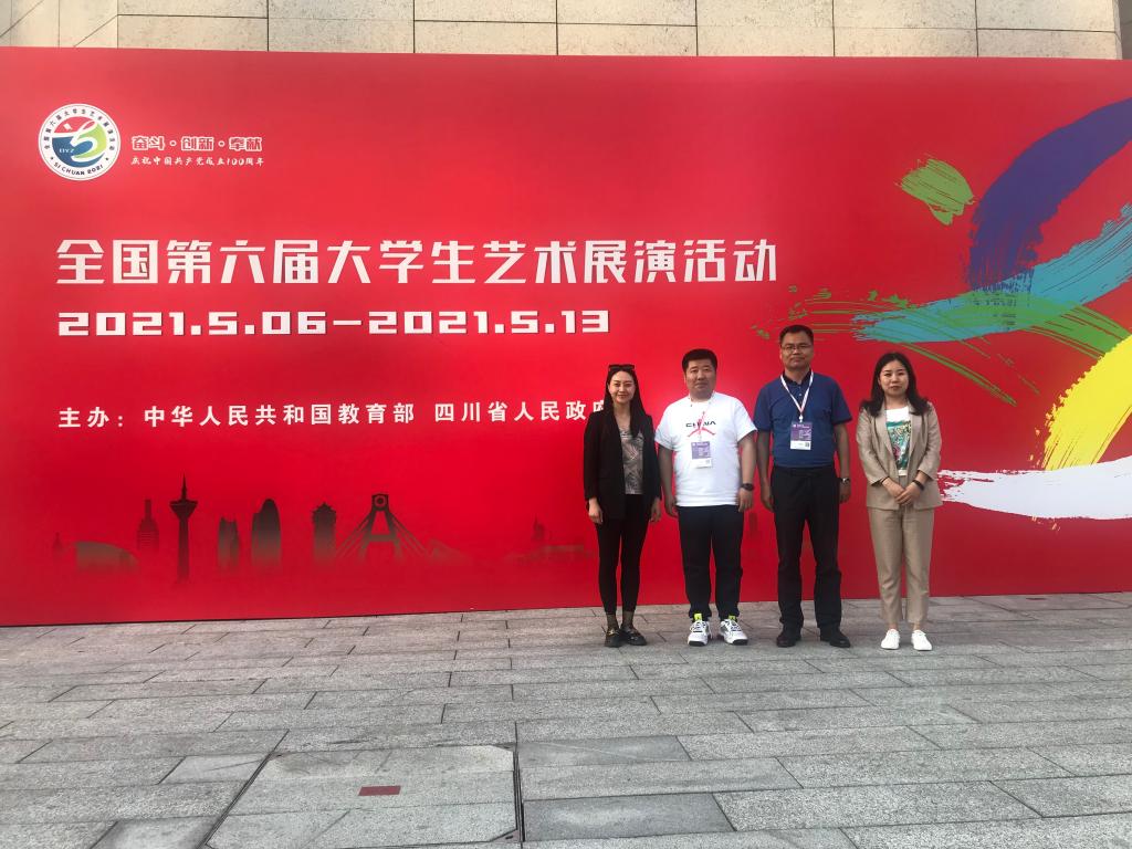 5月6日,以“奋斗·创新·奉献”为主题的全国第六届大学生艺术展演活动将在四川成都开幕。本届艺术展演由教育部和四川省人民政府主办,四川省教育厅和成都市人民政府承办。大艺展现场展演共有31个省(区、市)、新疆生产建设兵团和香港、澳门特别行政区,共34个地区198所高校264支代表队的6800余名师生参加现场展演。5月6日-9日,Beat365唯一官方网站副院长成党伟带领专业教师肖剑、李玉娇、鄢志莉观摩了合唱、舞蹈、艺术工作坊及公共艺术作品展。