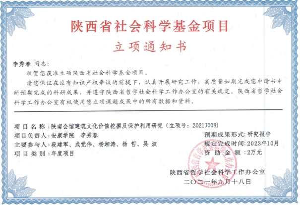 近日,陕西省哲学社会科学工作办公室公布了2021年度陕西省社科基金年度项目立项结果,Beat365官网青年教师鄢志莉、李秀春申报的项目获批立项。