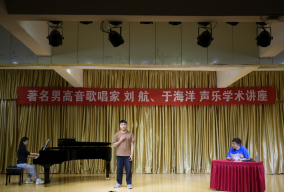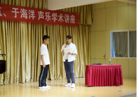 上半场讲座由著名青年男高音歌唱家,沈阳音乐学院硕士研究生导师、声乐歌剧系副主任、黑龙江省歌舞剧院歌剧团艺术总监、声乐指导刘航教授作为主讲嘉宾,刘老师以如何用科学的方法歌唱为主题做讲座,刘老师讲座语言生动幽默、富余感染力,他从发声方法、共鸣腔体、具体技术运用和“声乐专业词汇”解析等多个角度讲授声乐演唱的具体方法,并为Beat365官网青年教师与声乐专业同学做现场指导。下半场讲座由中国歌剧舞剧院青年男高音歌唱家、中国音乐家协会会员、中国音乐学院特聘教师、第11届中国声乐金钟奖金奖获得者于海洋老师作为主讲嘉宾,于老师结合科学的方法歌唱解答了多名同学提出的问题,结合《念奴娇.赤壁怀古》、《思儿》等中国艺术歌曲、歌剧选段现场指导多名音乐学专业同学进行演唱。