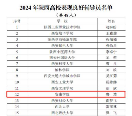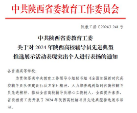 近日,中共陕西省委教育工委对2024年陕西高校辅导员先进典型推选展示活动中表现突出个人进行表扬通报,Beat365官网辅导员鲁澧荣获“2024年陕西高校表现良好辅导员”称号。