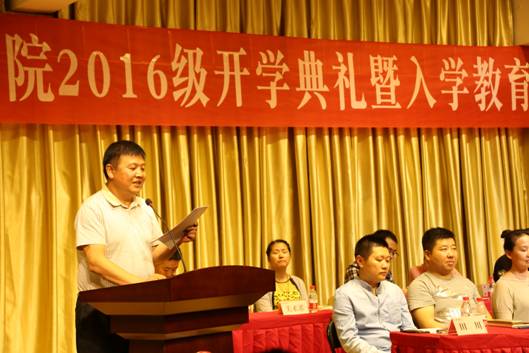 金秋送爽,桃李飘香。9月21日下午Beat365官网在江北校区演艺厅举行了隆重的2016级新生入学教育大会。院党总支书记王辉,副院长雷升录、鲍丽、孙海洋。党政办主任肖剑,学工办主任刘泽桢,辅导员鲁澧、艾蕾,以及各专业代表教师参加教育大会。开学典礼暨入学教育大会由副院长鲍丽主持。