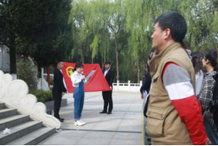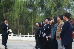 “我们是五月的花海,用青春拥抱时代;我们是初升的太阳,用生命点燃未来”大家集体齐唱团歌。在热烈的团歌声中,刘泽桢老师带领大家参观了烈士陵园,并向同学们详细讲解了牛蹄岭战役的内容和重要意义,以及孟俊奇团长的英勇事迹。刘老师向同学们寄语:缅怀先烈,继承遗志,立志成才,报效祖国。
