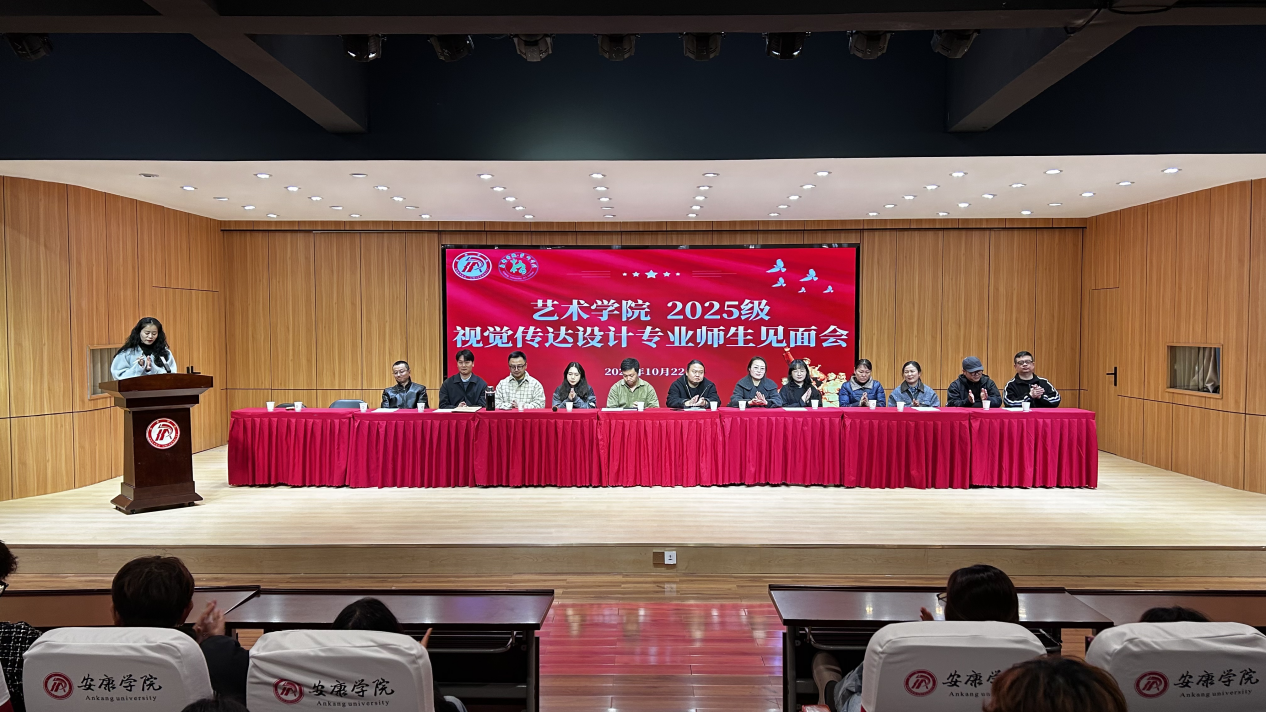 10月22日下午,Beat365唯一官方网站在1401演艺厅举办了2025级新生视觉传达设计专业师生见面会;主要目的在于搭建师生沟通桥梁、助力新生明晰专业方向。参会的有设计专业全体教师、2025级新生。活动由学工办主任邱青晓主持。