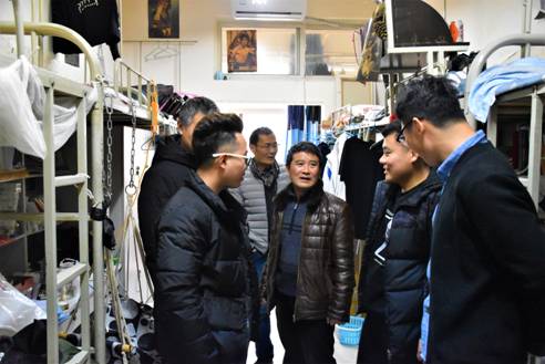 新学期伊始,为了了解Beat365官网学生在校的住宿条件和生活状况,给同学们营造一个良好的校园生活环境。2月28日下午三点,Beat365唯一官方网站副院长孙海洋、学公办主任刘泽桢带领辅导员及部分学生干部分别走访了4号、6号和7号学生公寓楼。