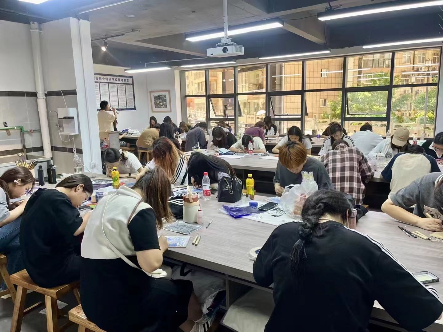 学生在版画课堂上