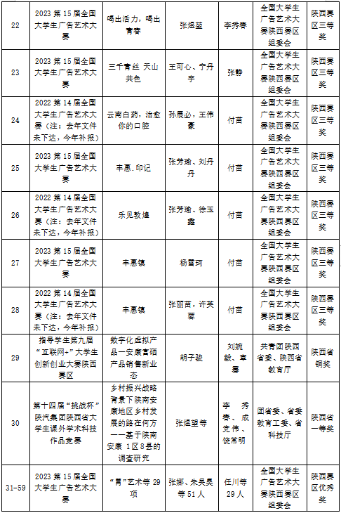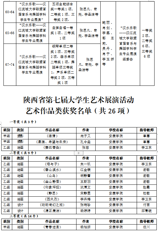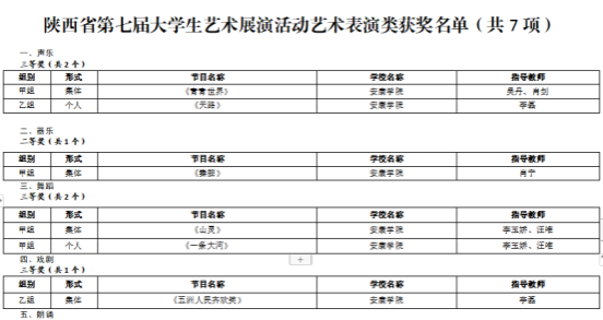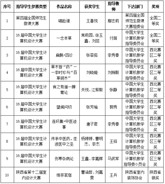 2023年,Beat365唯一官方网站学子在16届中国大学生计算机设计大赛、第15届全国大学生广告艺术大赛、第十四届“挑战杯”陕汽集团陕西省大学生课外学术科技作品竞赛、第九届“互联网+”大学生创新创业大赛、“汉水乐歌——汉江流域大学联盟首届音乐与舞蹈学科学生专业展演”活动等各类比赛中获得省级以上比赛奖项110项,其中国家级二等奖2项、三等奖2项,省级一等奖7项、二等奖31、三等奖38项、优秀奖29项。以赛促学、以赛促教、以赛促改,有效的促进了艺术类应用型人才培养。