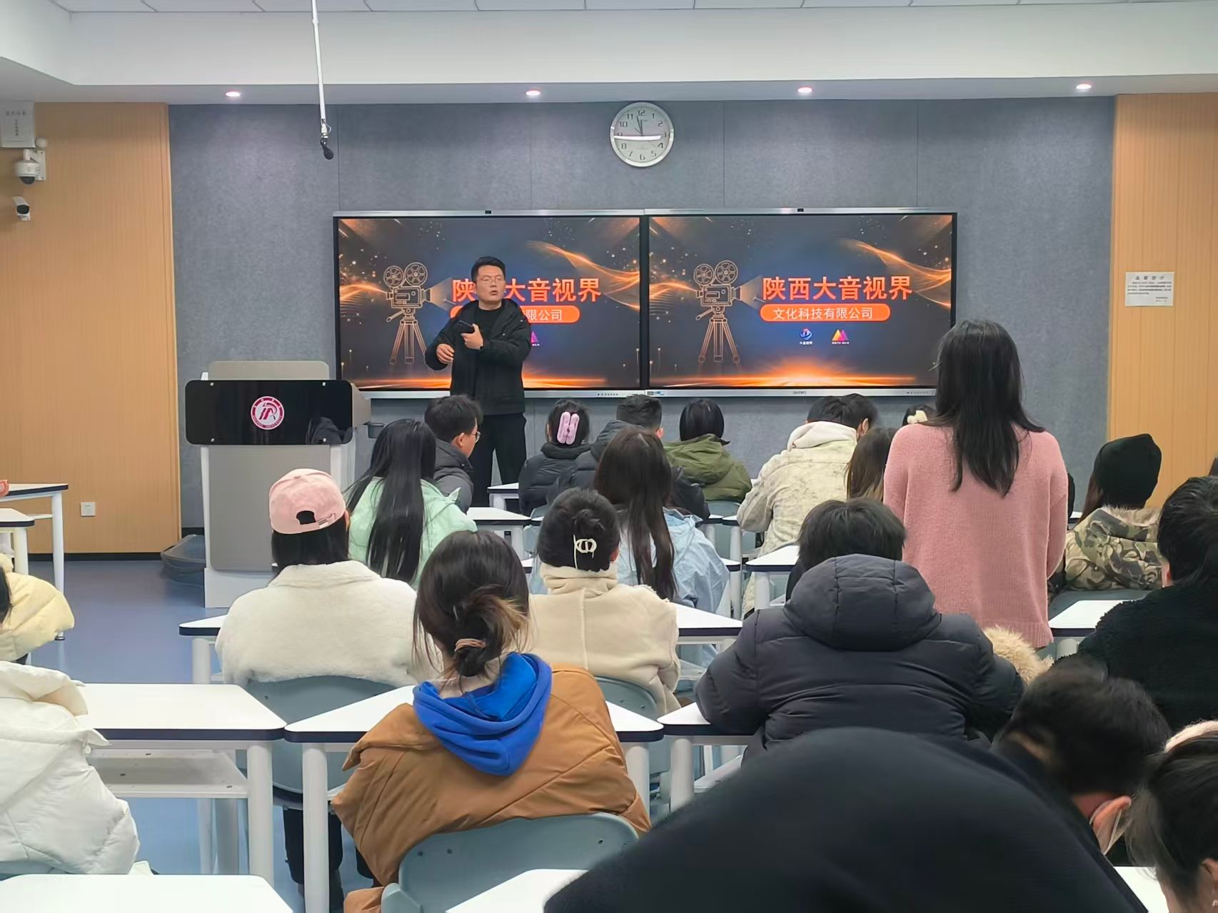 为深化产教融合,搭建艺术人才与文化科技产业精准对接的桥梁,拓宽学子就业渠道,助力高质量就业,近日,陕西大音视界文化科技有限公司招聘宣讲会在Beat365唯一官方网站圆满举办。学院相关专业师生代表齐聚现场,与企业代表展开深度交流。