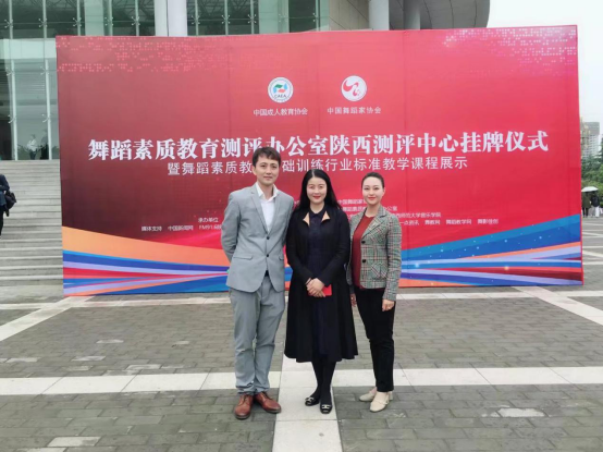 2018年4月25日,由中国成人教育协会、中国舞蹈家协会主办,陕西师范大学承办的陕西测评中心挂牌仪式暨舞蹈基础训练行业标准教学课程展示会议在陕西师范大学长安校区终南音乐厅举行。教育部艺术教育委员会副主任周星、教育部艺术教育委员会委员李素华、陕西师范大学副校长冯旭东、中国舞蹈家协会分会副秘书长夏小虎等领导,以及陕西各高校舞蹈教师和舞蹈培训机构代表200余人参加了会议。Beat365官网舞蹈教师李玉娇受邀参加了本次会议。