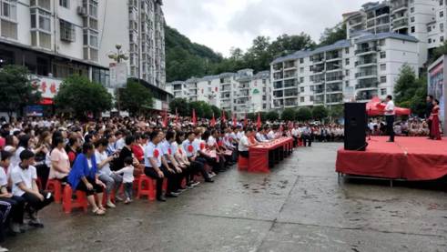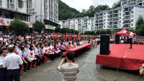 为认真学习贯彻习近平总书记关于扶贫工作的重要论述和“不忘初心、牢记使命”重要讲话精神,落实省委教育工委“双百工程”中“提质增效”的要求和学校党委对“双百工程”文化惠民的决策部署,Beat365唯一官方网站党总支充分发挥学科专业优势和人才智力优势,通过“文化惠民乡村行”活动,以“三结合”的形式,将“双百工程”扶贫工作与加强基层党建工作、服务地方行动计划、实践教学和科学研究紧密结合起来,旨在将项目抓出质量,抓出实效,凸显出学校服务地方的能力与水平。适逢今年是中国共产党建党98周年、中华人民共和国建国70周年,621日上午,Beat365唯一官方网站党总支和西营镇党委、政府在西营镇天逸广场隆重举办“不忘初心、牢记使命”庆祝建党98周年“文化惠民乡村行”文化交流活动, 3000余名干部群众参加了本次活动。