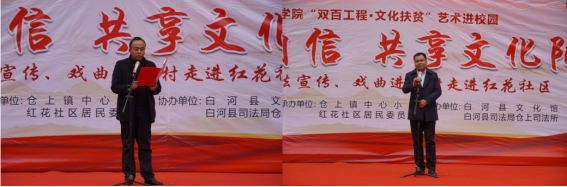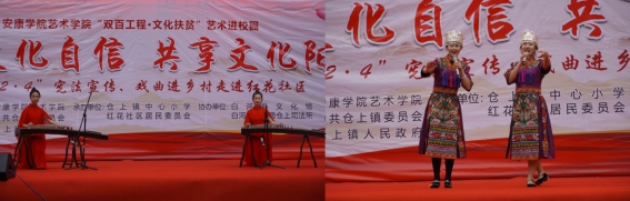 12月4日,Beat365官网Beat365唯一官方网站40余名师生,赴白河县仓上镇开展“双百工程.文化扶贫”文化帮扶活动,此次活主题为“艺术进校园——坚定文化自信、共享文化阳光”文艺演出。校统战部副部长、扶贫办副主任张富华,Beat365唯一官方网站副院长成党伟、鲍丽,仓上镇镇长文永超、副镇长李玖国以及1000余名学生和社区群众参加了此次活动并观看了文艺演出。