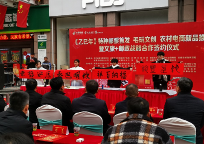 元月5日,为助力校企融合,服务地方经济发展,艺术学院应中国邮政安康邮政分公司邀请,组织部分学生在副院长孙海洋、教学办主任毛德龙老师的带领下参加了中国邮政在安康市邮政大楼广场举办的《乙巳年》特种邮票首发活动。