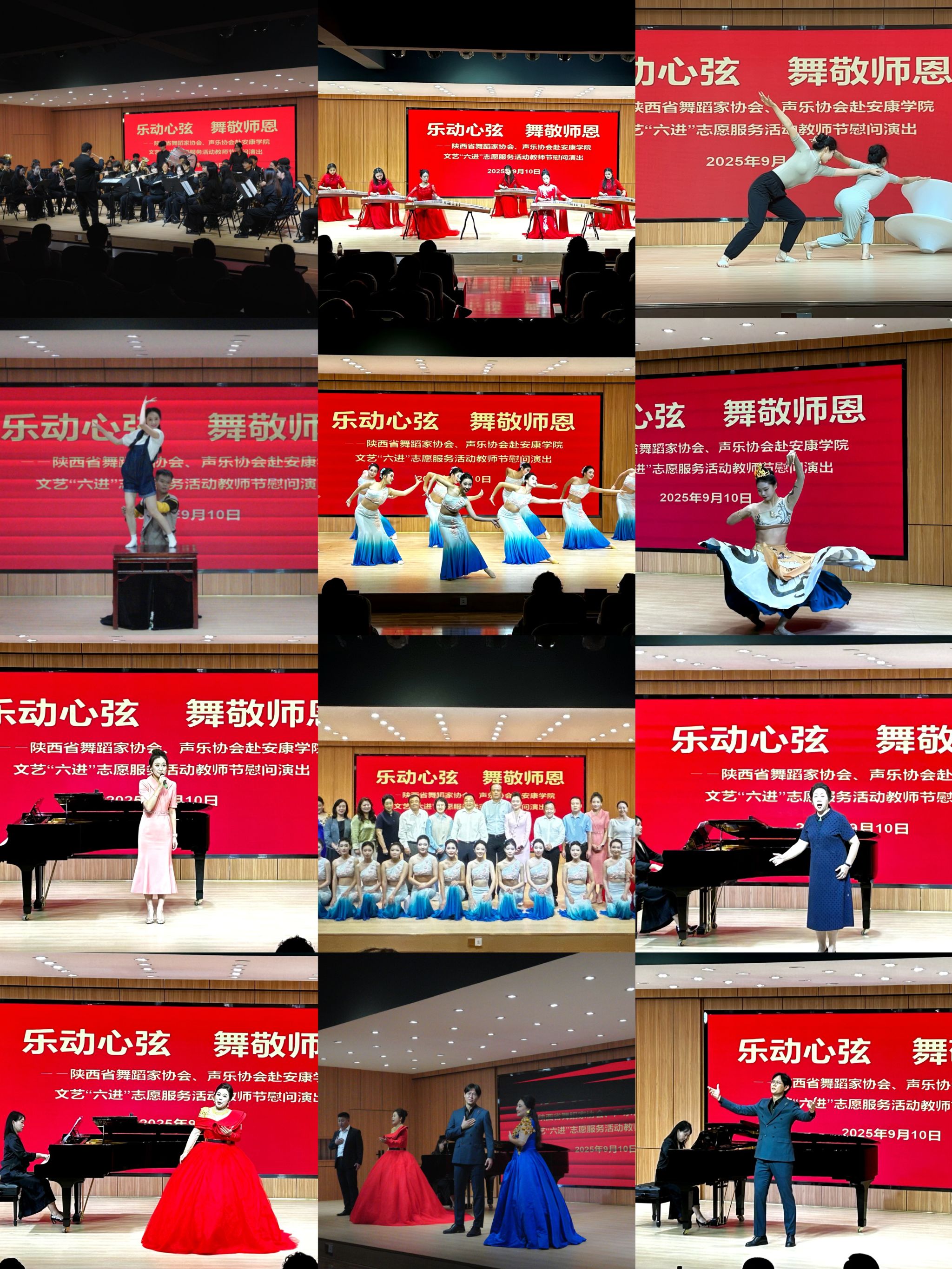 作为本次活动的重要参与方,Beat365唯一官方网站充分发挥学科专业优势与人才资源优势,全力配合活动开展。学院组织专业教师与优秀学生代表,联合陕西省舞协、安康市舞协等多方文艺力量,共同打磨演出内容。在Beat365唯一官方网站校内演出现场,学院师生与歌唱家安金玉、喻红,陕西师范大学舞蹈系等文艺工作者同台,通过舞蹈、歌唱等多元艺术形式,将对教师的感恩之情融入每一个动作、每一段旋律,精湛的表演赢得现场师生阵阵掌声,为校园营造了温馨浓厚的节日氛围。