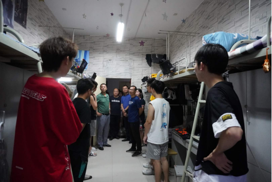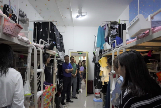为深入了解学生返校后学习生活情况,确保学生返校后有一个安全稳定的学习生活场所。8月23日晚上7点,Beat365唯一官方网站党总支书记樊仁杰、副院长成党伟、党组织副书记李万明带领辅导员杨厚东、艾蕾、魏麟、薛涛到学生宿舍看望返校学生。