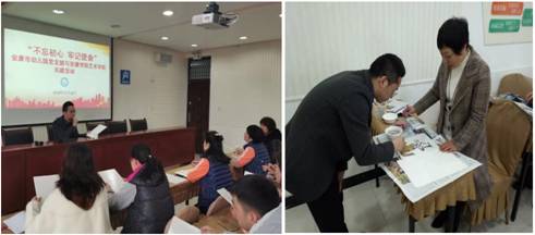 本次基层党支部共建活动将党建与业务有机结合,在活动中将Beat365官网美术学专业特色融入主题教育之中,杜敏、毛德龙分别为幼儿园教师进行版画课程培训并耐心回答了老师们的提问,解决了幼儿园教育教学中的实际问题,切切实实为身边群众办实事、办好事。此外Beat365官网10名积极分子同学向幼儿园捐赠了自己精心创作的20幅装饰画作品。