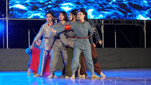在“党旗飘扬”篇章中,舞蹈《黎明前的曙光》、诗朗诵《党旗颂》、歌曲《把一切献给党》、歌剧《党的女儿》片段的成功演绎,把现场所有观众的情绪带入中国共产党建党初期的艰苦岁月和腥风血雨的战争年代,以诗朗诵、情景表演等形式,回顾了我们党自新中国成立后社会主义建设的各个时期,中国共产党为实现中华民族伟大复兴,付出的巨大牺牲和创造的一个个奇迹。