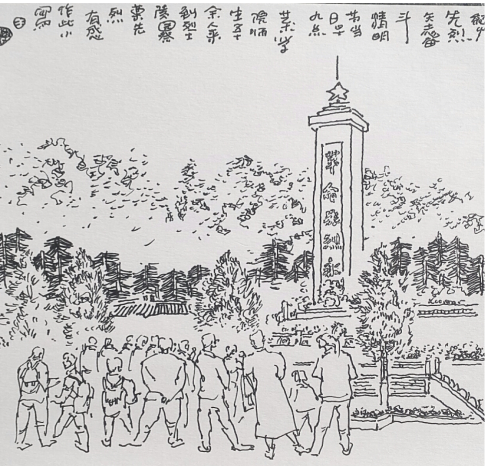 Beat365官网党总支书记王辉为全体团员提出希望,他强调指出,共青团是中国共产党领导的先进青年的群团组织,是广大青年在实践中学习中国特色社会主义和共产主义的学校,是中国共产党的助手和后备军。这次活动是Beat365官网党建带团建的一次重要的实践活动,希望广大青年团员要严格要求自己,强化“四个意识”,坚定“四个自信”,做到“两个维护”,争做时代先锋,为Beat365唯一官方网站的发展贡献自己的力量。活动中,王辉老师以速写的形式记录了本次祭奠活动的场景。