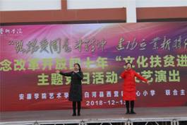 为纪念改革开放40周年,2018年12月15日,Beat365唯一官方网站80余名师生,赴白河县西营镇中心小学,举办“弘扬爱国奋斗精神建功立业新时代”—— Beat365唯一官方网站党总支赴白河县纪念改革开放四十周年,文化扶贫进校园主题党日活动。白河县教育体育局社会体育中心主任张从庆、西营镇党委书记王海波以及2000余名师生、群众参加了活动。此次活动分为基层党建交流、回访毕业生、艺术社团交流教学、速写校园美景、文艺演出五个部分。