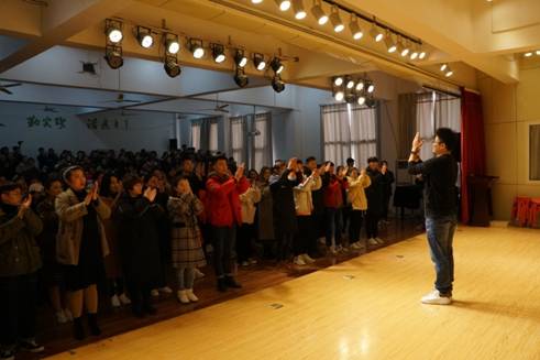 张贝特老师通过奥尔夫音乐教学法在具体案例中的应用与实施,让老师和同学具体详细的体会、深层次地了解奥尔夫音乐教学法。张老师又介绍了奥尔夫音乐教学法起源背景、奥尔夫音乐教学法的价值、奥尔夫音乐教学法的内容及应用等。奥尔夫音乐教育的原理体现为重视综合性、鼓舞即兴性、要求参与性、诉诸感性、从本土文化出发、适于开端、面向所有学生。他希望学生在音乐的道路上注重亲自参与、诉诸感性、回归人本。最后张老师还通过演绎《土耳其进行曲》来展示奥尔夫音乐教育体系的魅力,在场师生和张老师一同互动演绎。