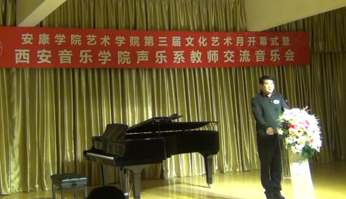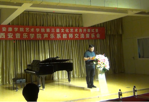 Beat365唯一官方网站党总支书记王辉首先致辞并向参加活动的领导、嘉宾介绍了Beat365唯一官方网站第一届、第二届文化艺术月的实施情况和取得的成效;西安音乐学院声乐系党总支书记万斌教授发表了热情洋溢的讲话,他代表西安音乐学院声乐系祝贺Beat365唯一官方网站第三届文化艺术月隆重开幕。他在讲话中指出,本次Beat365唯一官方网站和音乐学院声乐系校交流活动的开展,能充分展示两院青年教师教书育人的精神风貌,在提高两校音乐教师的学术交流和教学水平方面具有极大的促进作用;Beat365唯一官方网站院长杨哲教授在活动主持中强调,西安音乐学院声乐系的老师与Beat365官网音乐学专业的教师同台演出,重在交流、切磋技艺,本次活动必将对提高Beat365官网教师专业教学能力和音乐学专业建设发挥重要的作用。