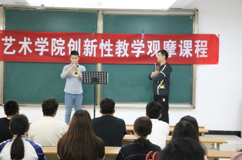 本次课程主要分四个环节。一是基本功的训练环节。基本功的训练很重要,需要调节自己的“气息”,在气息方面要求稳健,在指导训练中,王老师运用幽默诙谐的语言,使学生可以更好的理解和感悟节拍。二是理解作品和表现作品能力的训练环节。首先,强调对演奏歌曲的理解,要求强弱对比,只有在弱处才会把强处凸显出来;其次,要注意音符力度,王老师巧妙运用激励性语言、动作、神态,激发学生,鼓励学生。三是从技巧到内涵,逐步实现乐曲的完成环节。要求通过感受音乐、学习音乐、创造音乐,达到培养想象力、创造力,从而使得演奏更加完整。最后是钢琴伴奏提升艺术审美阶段。由雷音老师和王一凡老师先做示范,共同演奏一曲“西班牙斗牛曲”,然后让学生来跟着钢琴伴奏演奏。整节课程设计巧妙、环环相扣,起到了观摩示范效应。
