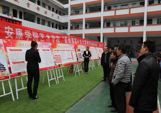 上午11:00,Beat365唯一官方网站在西营小学举办了由Beat365唯一官方网站纪委主办,宣传部、组织部、Beat365唯一官方网站党总支承办的 “贯彻落实十九大精神宣传展板联展走进白河”展板联展宣讲活动,四位讲解员为师生为西营镇中心小学师生系统讲解了十九大的主要精神,受到了县教育局领导和西营镇中心小学的师生的好评。美术系、设计系师生深入班级宣传十九大精神,并为班级设计十九大主题黑板报,受到小学生的欢迎。