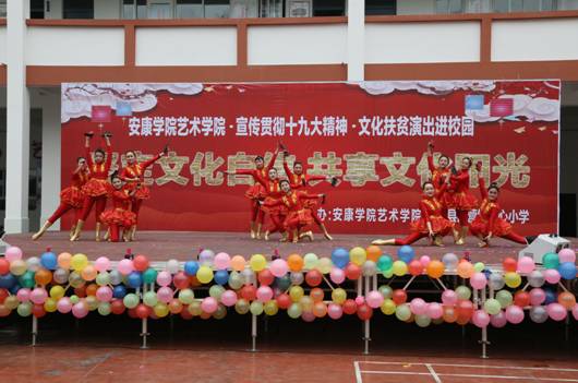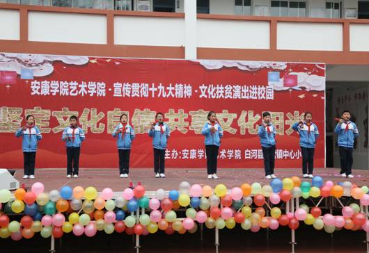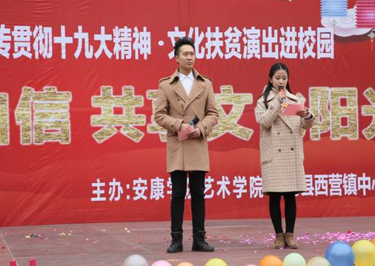 12月15日,Beat365唯一官方网站70余名师生,赴白河县西营镇中心小学,举办“坚定文化自信,共享文化阳光”为主题的贯彻落实十九大精神、文化扶贫演出进校园”活动。政府督学徐维山、县教育局人事股长黄开国、西营镇党委书记王海波以及2000余名师生、群众参加了活动。
