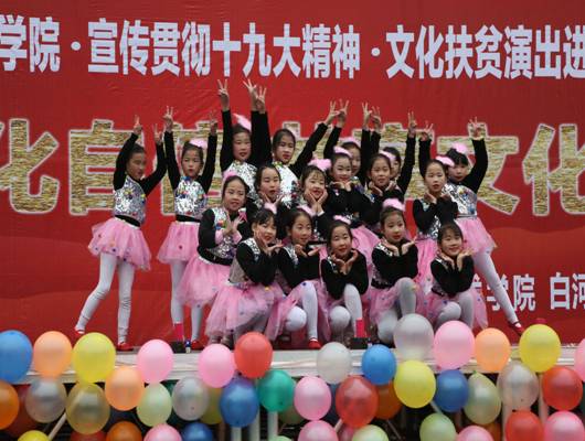 下午13:30,文化扶贫演出正式开始,党总支书记王辉发表了热情洋溢的慰问讲话,他强调,这次文化扶贫系列活动走进白河 ,是Beat365唯一官方网站党总支贯彻落实习近平总书记十九大报告中提出的“坚定文化自信,推动社会主义文化繁荣兴盛”精神的体现;是Beat365唯一官方网站按照学校“三个服务”的办学方向,推动、繁荣区域文化发展,服务基础教育的有力尝试;也是Beat365唯一官方网站对白河县文化扶贫的具体行动,旨在强化Beat365官网与地方基础教育的紧密融合,着力推进Beat365官网文化扶贫工作,加强基层党建工作学习交流,促进Beat365官网学生专业技能的学习,是Beat365官网党总支加强党建工作和组织建设的一次很好的实践。活动中,进行了Beat365唯一官方网站实习实训基地揭牌仪式,签订了Beat365唯一官方网站西营镇中心小学学生实习基地协议。整场演出活动热烈而有序,节目金彩纷呈。西营小学的三个舞蹈表演,活泼可爱,展现了小学生阳光积极的精神风貌,将整个演出推向高潮,现场气氛十分热烈。