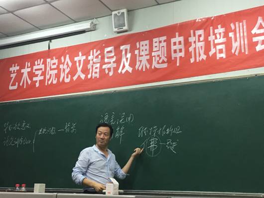 雷升录副院长从“毕业论文的意义,毕业论文对学生的训练目的,评价论文的标准”三个方面进行阐述。他指出,毕业论文代表专业领域独立研究成果,必须要有独特的艺术视角;毕业论文选题关乎论文质量和水平,必须要有缜密、清楚、严肃的逻辑思维,不能选择逻辑不通顺的伪命题以及过分夸大的选题;毕业论文反映当代大学生综合能力水平,必须要有国际视野,拓宽知识视野,切忌“闭门造车”、“坐井观天”。会上雷升录副院长还就往届学生在毕业论文设计方面出现的问题与不足提出了意见建议,希望教师能认真对待辅导论文工作,合理安排时间,加强与学生交流沟通,指导学生按时完成各阶段的写作任务。