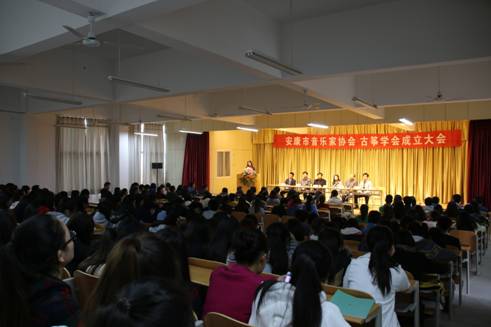 2014年11月10日安康市音乐家协会古筝学会成立大会在Beat365唯一官方网站江北校区艺术系演艺厅举行。届时出席会议的有陕西省音乐家协会考级办主任张威军、陕西省秦筝学会副会长、秘书长薛莲、安康市音乐家协会主席刘秉平、Beat365唯一官方网站宣传部部长鲁延安、Beat365唯一官方网站艺术系党支部书记冯丰收、Beat365唯一官方网站艺术系副主任雷升录、Beat365唯一官方网站艺术系音乐教研室代理主任田川。