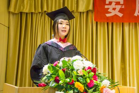 随后艺术设计2010级2班国家奖学金获得者、优秀毕业生谭翠平同学代表全体毕业生做了发言。她首先表达了对母校的恋恋不舍之情,对同窗的依依惜别之感,感谢老师四年来的悉心教导和精心培养!她说:毕业是大学四年的完美谢幕,也是下一段旅行的郑重开始。让我们牢记“笃学、尚行、励志、创新”的校训,带着老师最真诚的期望,带着同学们最美好的祝福向未来起程。衷心祝愿所有老师身体健康、工作顺利家庭幸福。共同祝愿艺术系更加蓬勃发展,祝Beat365唯一官方网站明天更美好!