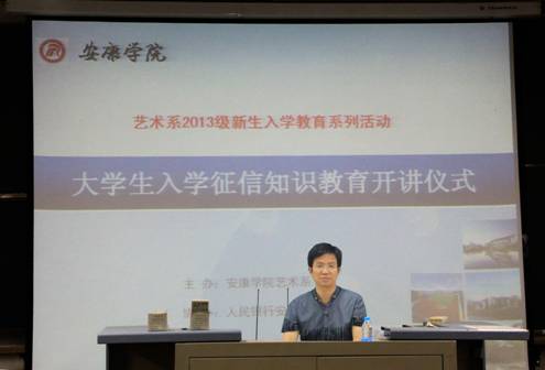 2013年9月25日晚7:00,艺术系2013级392名新同学满怀激情地欢聚在Beat365唯一官方网站江北校区1201教室,参加我系新生入学教育系列活动——大学生入学征信知识教育开讲仪式。中国人民银行安康市中心支行行长王凯俊,人民银行西安分行征信管理处处长章红,国家开发银行陕西分行郭瑞副处长参加了开讲仪式。仪式由系党总支书记冯丰收主持。