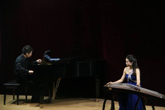 2013年6月24日晚,我系青年教师张展在东校区一号楼六楼报告厅成功举办了个人古筝音乐会。音乐会共演奏了《黄陵随想》、《抒情幻想曲》、《四段锦》、《声声慢》、《晓雾》、《风之猎》、《云岭音画》共七首作品。