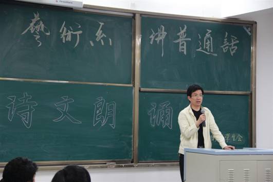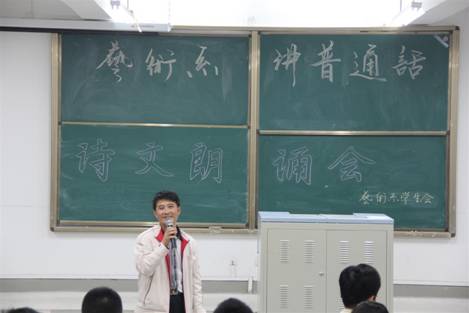 415日晚,我系“讲普通话诗文朗诵会”在江北校区2102教室举行。系党总支书记冯丰收、系学工办主任刘泽桢、系学生会干部、2012级学生代表及艺术教育班全体同学参加了诗文朗诵会。