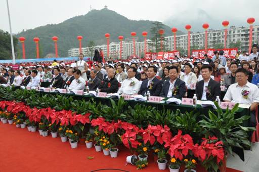 省市领导共同为“美好岚皋之树”挂上希望之叶,启动开幕式