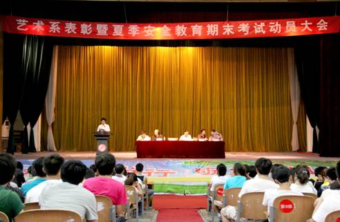 2012年6月19日下午15:00,我系在西校区大礼堂召开了“艺术系表彰及夏季安全教育期末考试动员大会”。莅临大会的有系党总支书记冯丰收、主任单福东、副主任章长青、雷升录、学工办主任刘泽桢以及辅导员黄娟、王毅、王胜选,会议由系办公室副主任肖剑主持。全系学生参加了会议。