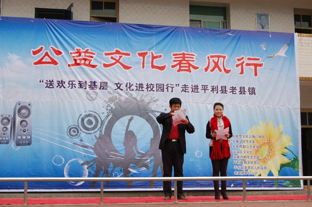 由安康市文化文物广电局主办,Beat365唯一官方网站艺术系、安康市群艺馆、安康市青少年宫等单位承办的我市一年一度的“文化艺术三下乡”活动,于2011年1月14日在平利县老县镇拉开了帷幕,受到当地领导和群众的热烈欢迎。
