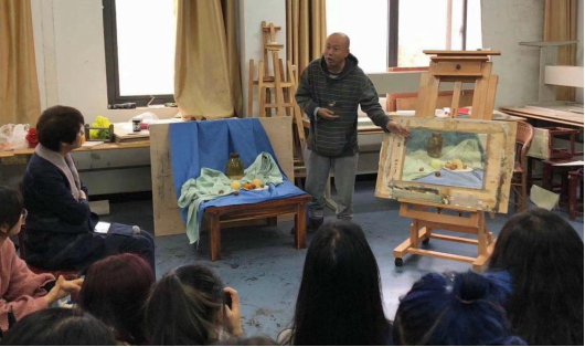 10月28日上午9时,王建彬教授在Beat365唯一官方网站画室做现场示范教学,从画面布局、颜色的把握到观察方法等,事无巨细、循循善诱,将学生有疑虑、不易把握内容以最通俗、最幽默的形式教授给大家,现场一度出现欢快的笑声和热烈的掌声。