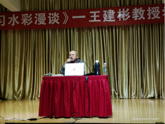 当日下午2时,王建彬教授在Beat365唯一官方网站演艺厅为美术学专业师生作了题为“学习水彩画漫谈”的学术报告,以个人的创作学习历程为例分享了其孜孜不倦的创作历程,对Beat365官网师生在水彩画创作方面有的较大的激励作用。