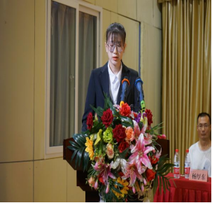 接下来,2021级新生代表视觉传达设计专业王瑞环同学进行发言。她倡议全体新生一是要志存高远,奋斗改变命运。在矢志奋斗中,珍惜青春岁月,展现青春风采,贡献青春力量;二是要勤学苦读,广交良师益友。善于利用学校丰厚的教学资源,在老师的帮助下,掌握正确有效的学习方法,学会自主学习、合作学习、探究学习;三是要严于律己,树立规范意识。养成良好的生活习惯,从小事做起,从现在做起,遵守学校、学院的各项规章制度;四是要勇于实践,努力奉献社会。在实践当中学习,在服务他人奉献社会中进步,才能获得更多成长。