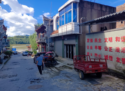 调研中,同学们了解到,近年来在脱贫攻坚和乡村振兴战略的推动下,村民的生活有了巨大的变化,对村庄进行了统一规划建设,依托自然风光和丰富的农业旅游资源,开发茶园、打造民宿、建设观光文化广场,开展旅游经济。吸引了大量游客前来体验采摘、种植等田园生活,为村民带来餐饮、住宿、娱乐等多种旅游产业收入,有效的推动了村庄的经济发展。齐整的青石板街巷,古式的木门板店面,伸向路中高耸的马头墙屋檐,及街头巷尾架设的古朴石凳、石墩,房屋整体风格为陕南古民居风格,与周边自然风光融为一体,给调研团队留下了深刻的印象。