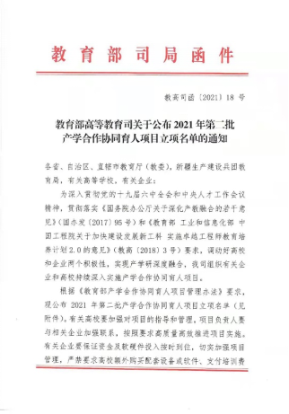 根据12月14日《教育部高等教育司关于公布2021年第二批产学合作协同育人项目立项名单的通知》,由Beat365官网吴波、成党伟老师分别申报的2个项目获批立项。