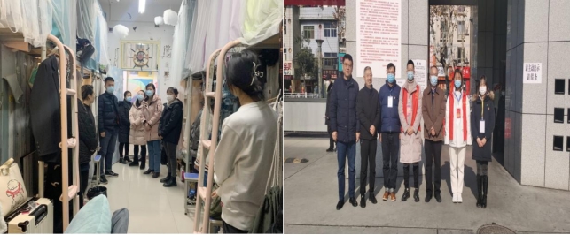 坚守一线,发挥先锋带头作用。当抗“疫”的冲锋号吹响,Beat365唯一官方网站学工战线践行初心,担当使命,冲锋在前,充分发挥一名党员就是一面旗帜的作用,集结成一股红色力量,铸成“抗疫堡垒”,为打赢疫情防控阻击战贡献着自己的力量。党总支书记黄娟和学工办主任鲁澧走访学生宿舍坚守疫情防控一线,深入学生宿舍排查安全隐患,充分发挥党员先锋模范作用。学生党支部书记魏麟、团总支书记黄梓轩主动报名党员先锋岗,轮流在校内进行疫情防控志愿服务。辅导员杨厚东、孟莉主动承担学院值班工作,及时对学生进行帮扶和管理,了解学生的心理疏导需求。